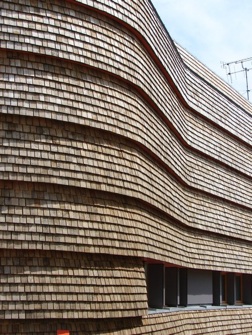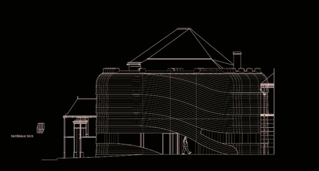Un partir d’un bâtiment existant, le projet consiste à réhabiliter une partie en réserves du musée, et construire un bâtiment neuf, recouvert de bardage bois, pour l’espace d’expositions permanente et temporaire.