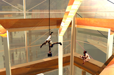 Dans la lignée du mémoire et de mes projets précédents, je souhaite imaginer, un nouvel espace de création, de diffusion, d’exposition, de communication, de recherche et d’expérimentation, destiné à accueillir des artistes de toutes disciplines mais aussi des démarches associatives et citoyennes participant à la vie de quartier. Ce quartier est le 18ème arrondissement. Populaire, diversifié, de multiples associations s’y sont formées. Toujours en quête de locaux, d’aides, de moyens, cet espace peut les accueillir, les accompagner et empêcher leur disparition. Ce nouveau lieu permet aussi de nouvelles rencontres entre ces associations et les artistes qui sont eux aussi hébergés. Ces artistes de toutes horizons y trouvent de l’espace et des moyens de création, mais aussi d’exposition et de production. Des rencontres, des échanges entre eux, le public, des professionnelles, permettent leur développement. Je souhaite donc imaginer un espace pour les arts. De la danse, au cirque, en passant par les arts plastiques et la vidéo, je souhaite un lieu ouvert au public devenant un axe majeur de la vie du quartier.