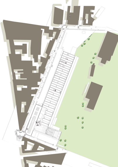 Mon site, en plein cœur de ce quartier, est la Zac Pajol. Ce site est une friche ferroviaire de 3 hectares entre la rue Pajol et les voies de chemin de fer de la Gare de l’Est. Une grande halle est la pièce maîtresse de l’ensemble des anciens entrepôts de la SNCF. Tout en gardant les traces de son ancienne fonction, une adaptation au programme et aux normes de sécurité me permettra de créer dans ses grands volumes ce nouveau lieu de vie.